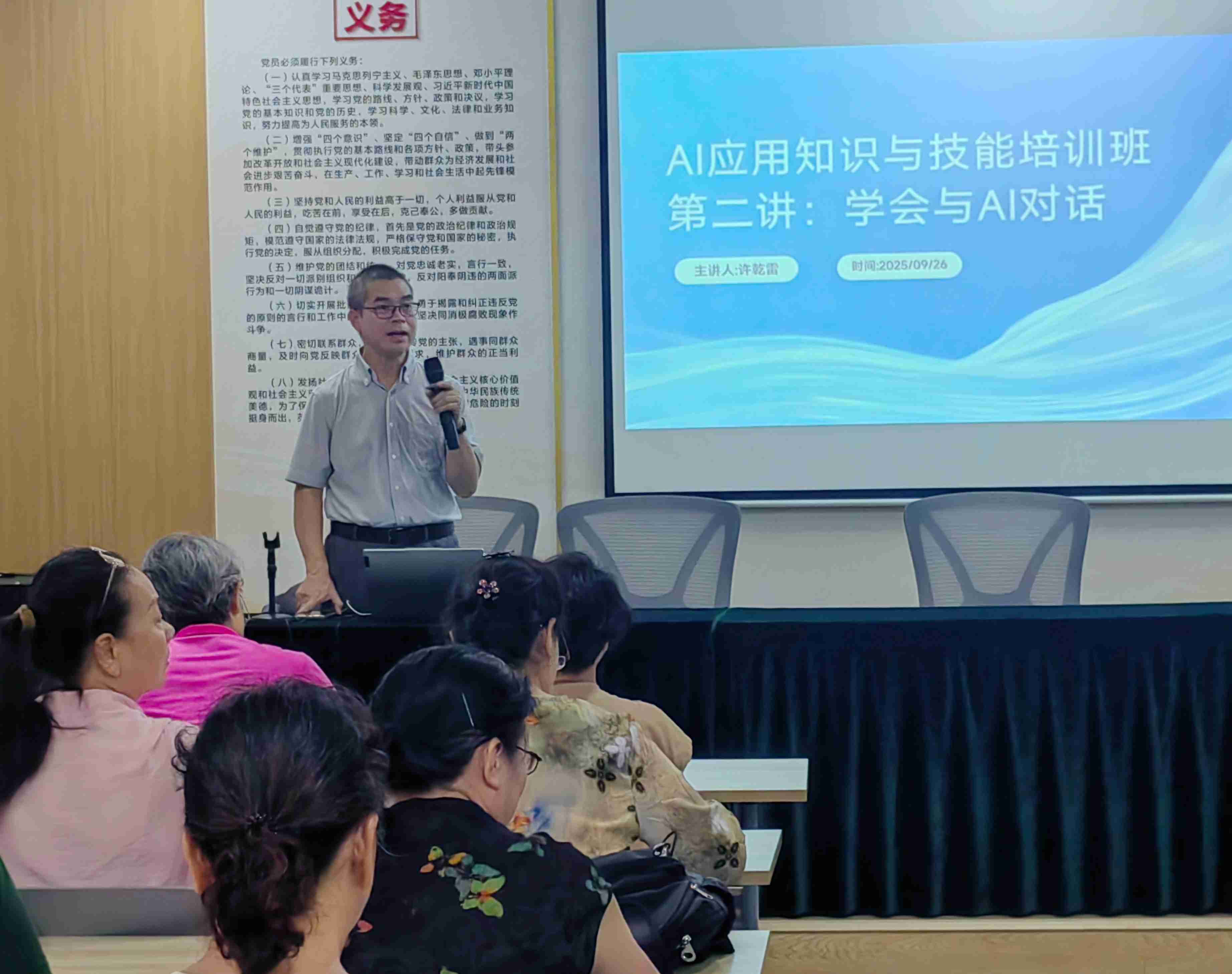 9月26日,南宁市西乡塘区明秀南社区“AI应用知识与技能培训班”第二讲“学会与AI对话”,在社区会议室顺利举办。中国人工智能学会会员、高级人工智能训练师许乾雷为社区群众带来实用的AI技能指导,帮助大家轻松掌握与AI高效互动的方法。